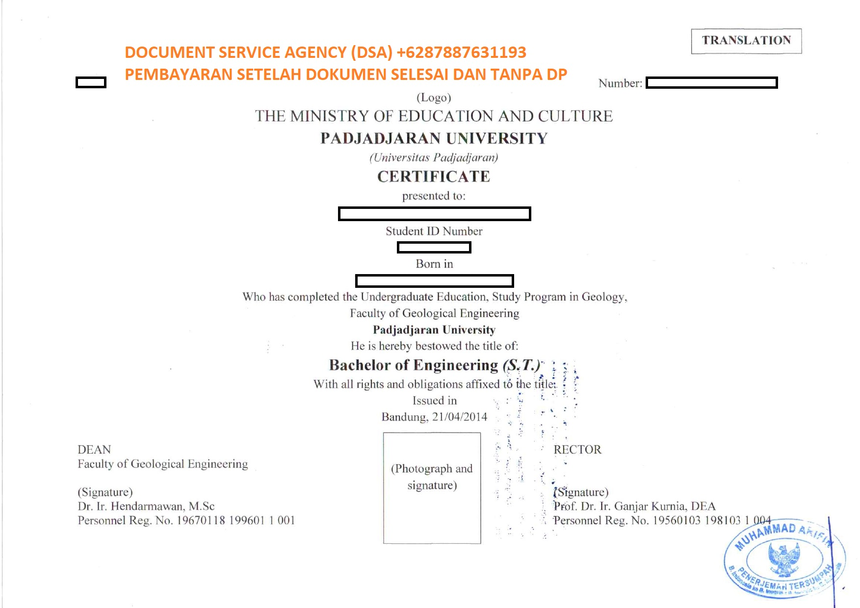 DSA (Document Service Agency) adalah spesialis jasa terjemah, legalisir, atestasi, apostile dokumen untuk keperluan di luar negeri dan pengurusan visa berpengalaman dan terpercaya. Bagi anda yang ingin melegalisir ijazah di Kedutaan Malaysia untuk keperluan bekerja, pengurusan visa, izin tinggal, dan lain-lain. Percayakan legalisir dokumen anda kepada kami, dengan layanan ” Pembayaran Setelah Dokumen Selesai dan Tanpa DP ” anda akan merasa lebih nyaman dan aman menggunakan jasa kami. Dan dalam hitungan beberapa hari dokumen anda selesai dan siap untuk digunakan.