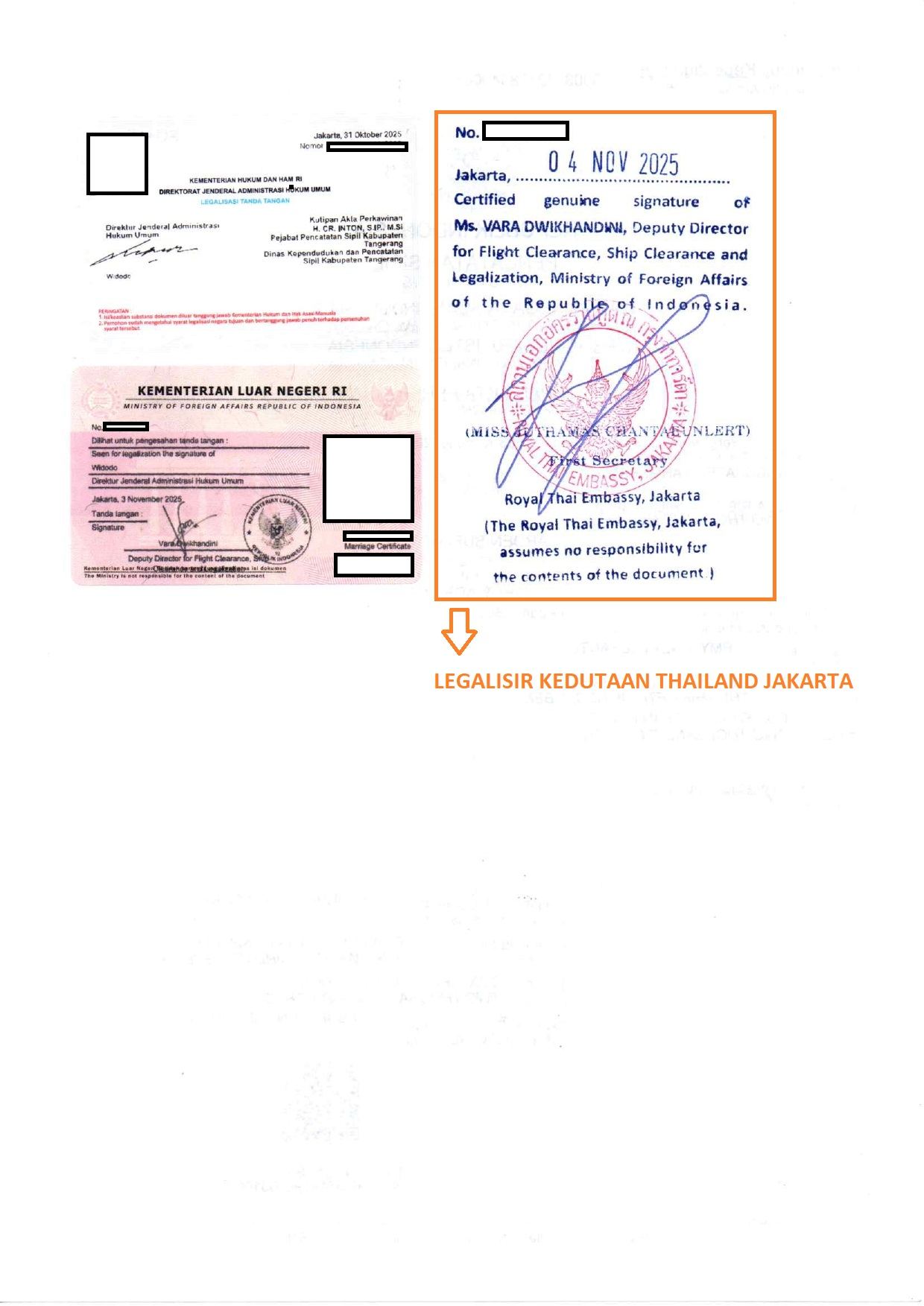 DSA (Document Service Agency) adalah spesialis jasa terjemah, legalisir, atestasi, apostile dokumen untuk keperluan di luar negeri dan pengurusan visa berpengalaman dan terpercaya. Bagi anda yang ingin melegalisir buku nikah di Kedutaan Thailand untuk keperluan pengurusan visa, izin tinggal, pendaftaran pernikahan dan lain-lain. Anda tidak perlu datang ke Jakarta karna pengurusan dokumen anda bisa diwakilkan kepada kami, dengan layanan ” Pembayaran Setelah Dokumen Selesai dan Tanpa DP ” membuat anda lebih nyaman dan aman menggunakan jasa kami.