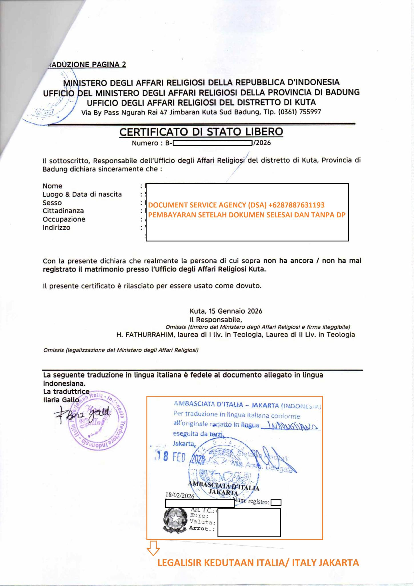 Telp/ Whatsapp : 021 48671259/ +62 878 8763 1193 atau email : documentsserviceagency@gmail.com